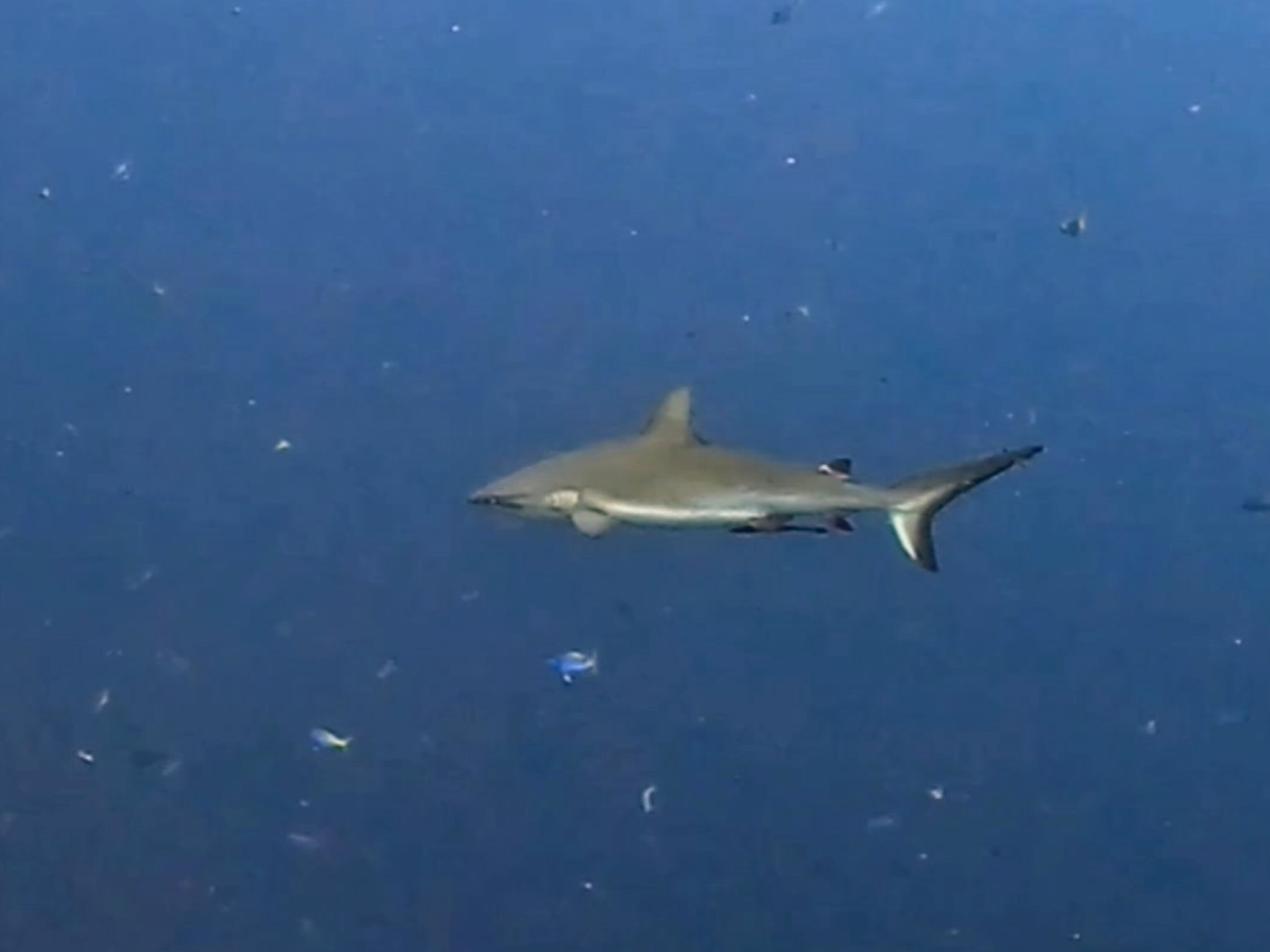 午後からは潮が速くなってきた途端に魚影がバッチリ。グレイリーフシャークも珍しく近寄ってくる。慣れてきたかな?