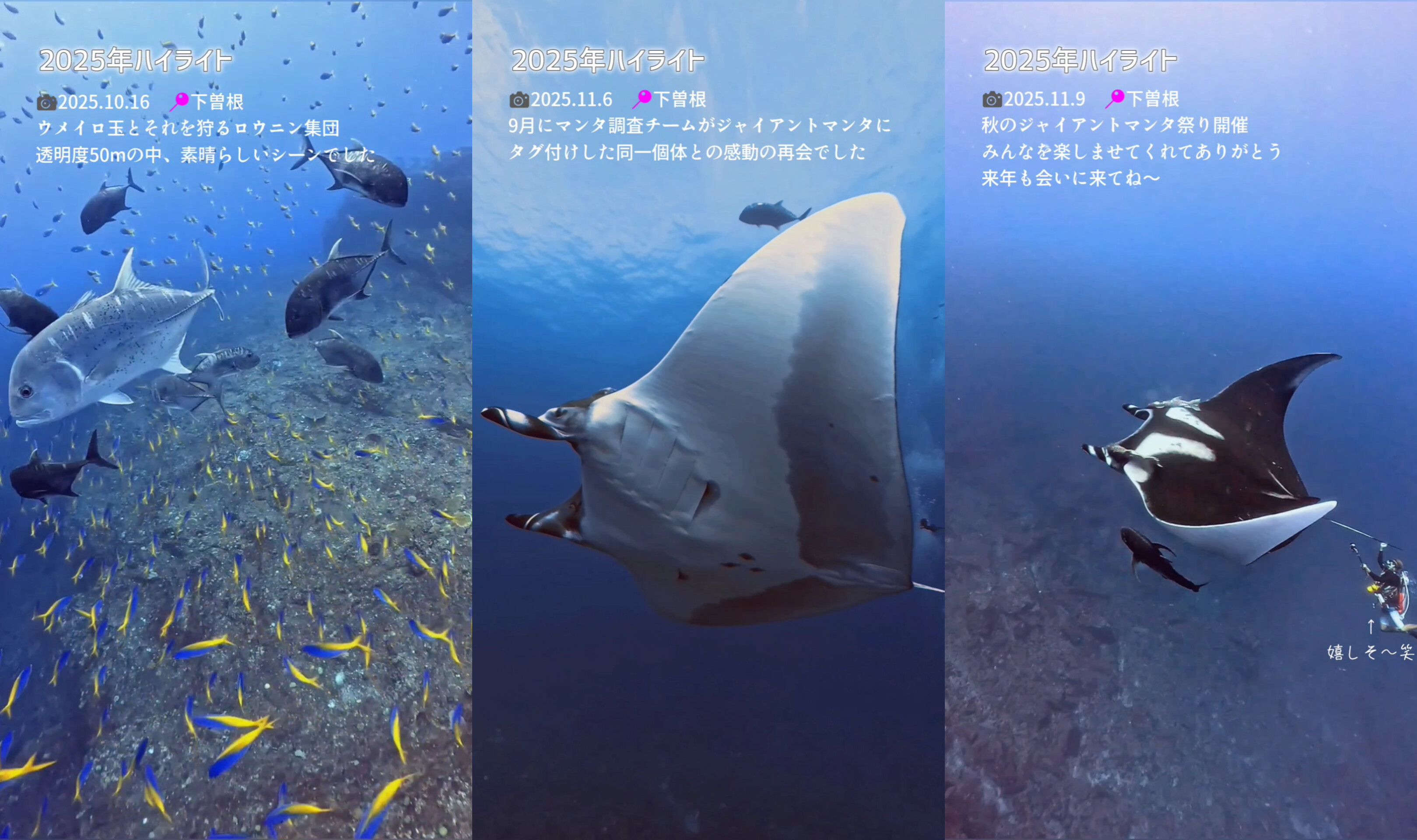 ジャイアントマンタも昨年に比べて遭遇率が上がりました。やはり水温ですな…