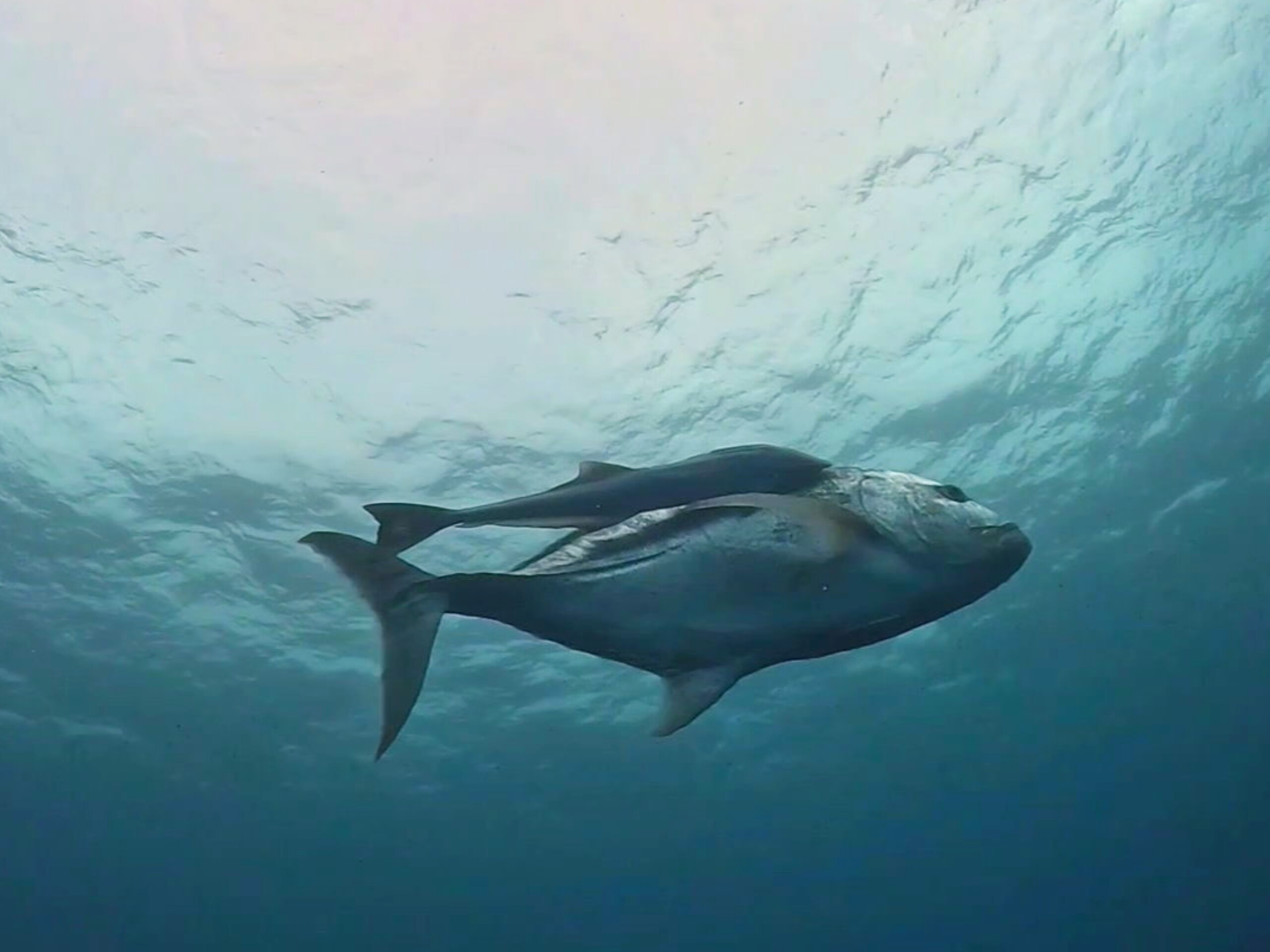 ロウニンがまっしぐらに突っ込んでコバンザメを引き離そうとするから、ジャイアントが嫌がって翻り…ちょこっとだけでした。その後も1度回ってきてくれたけど遊んでくれなかったなぁ