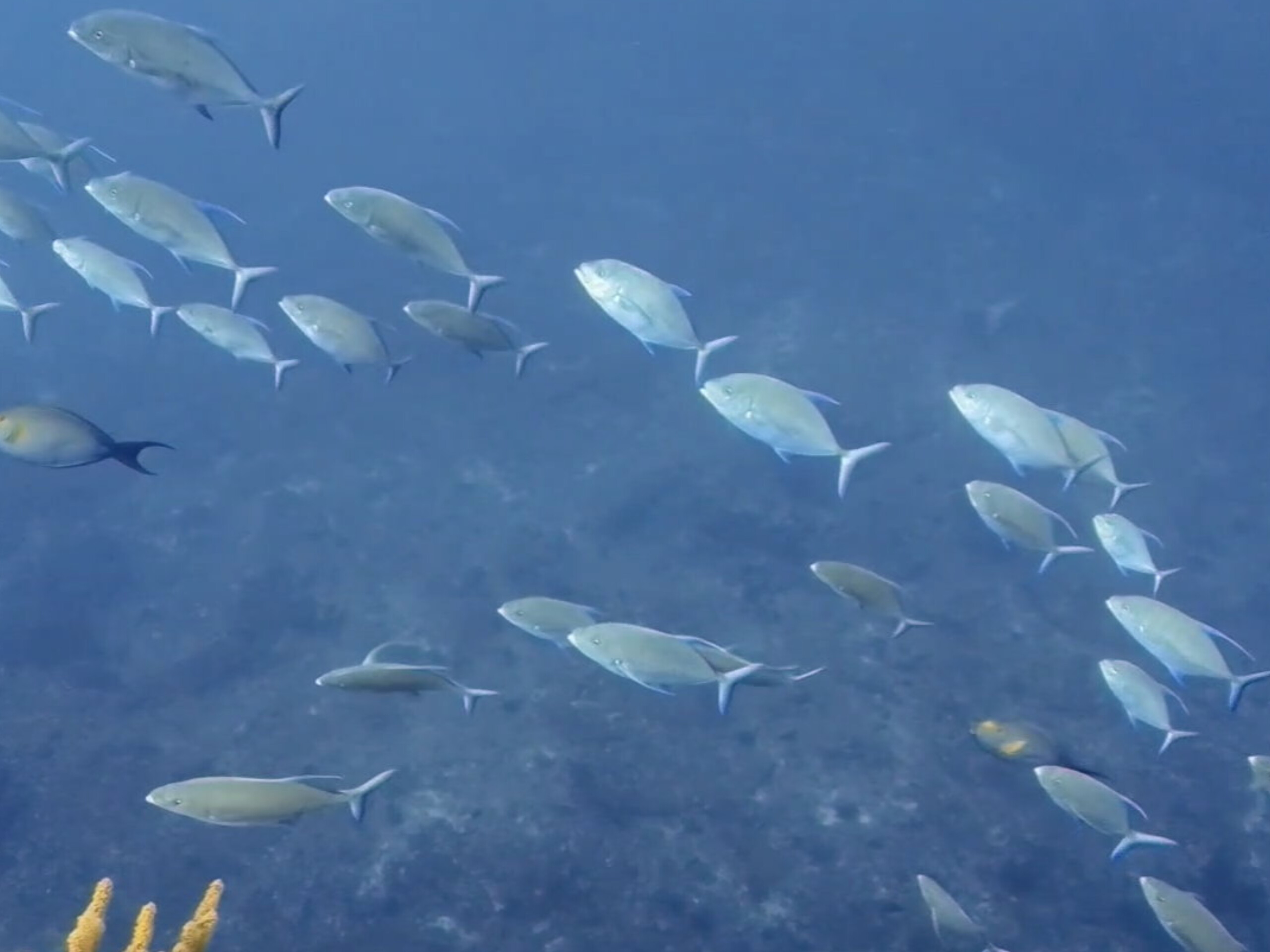 爆流なのに不思議とウメイロやグルクンは全く居なくて、なんと今頃になってナンヨウカイワリ登場 水温22℃だからかな… 群れは50匹くらいと少ないけど深場から登ってくるシーンは、ザ・下曽根でした。GWに大群になったら良いけど